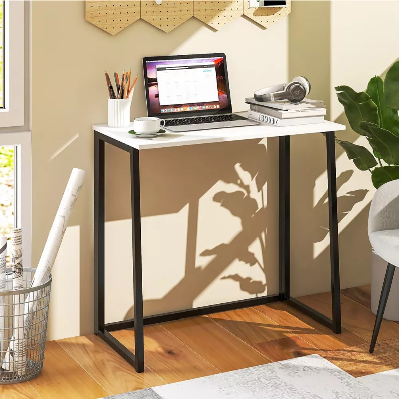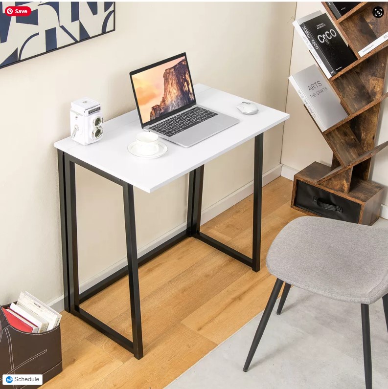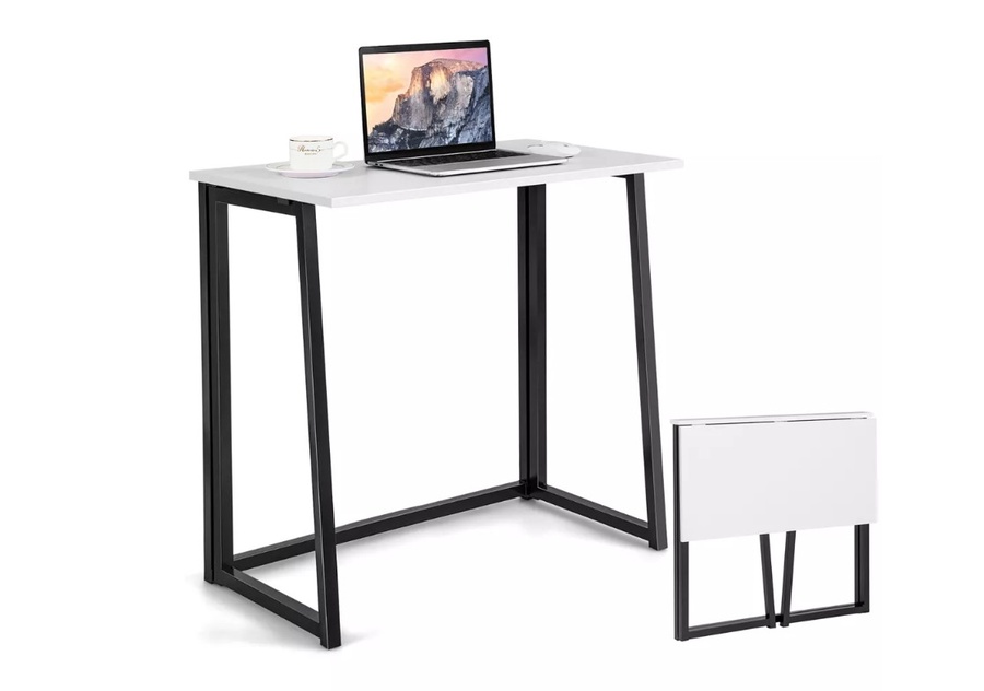 مكتب قابل للطي بلون ابيض خشب + حديد + ترابيزة هديه