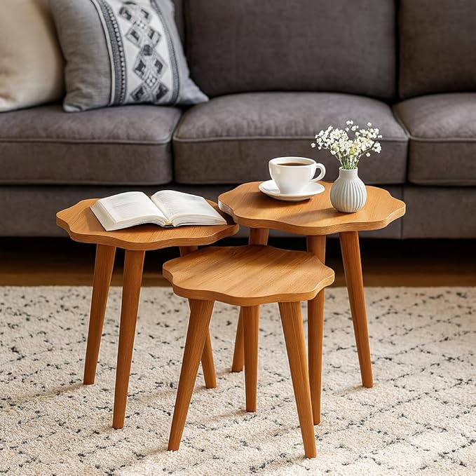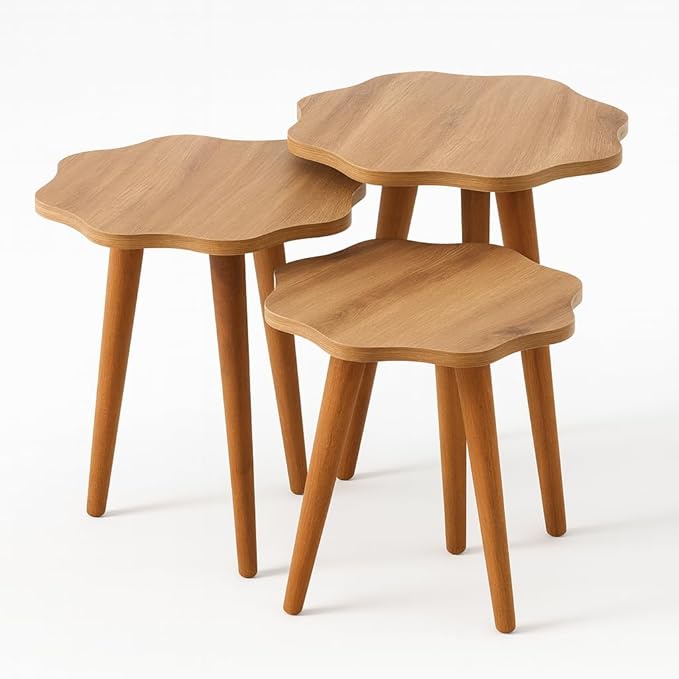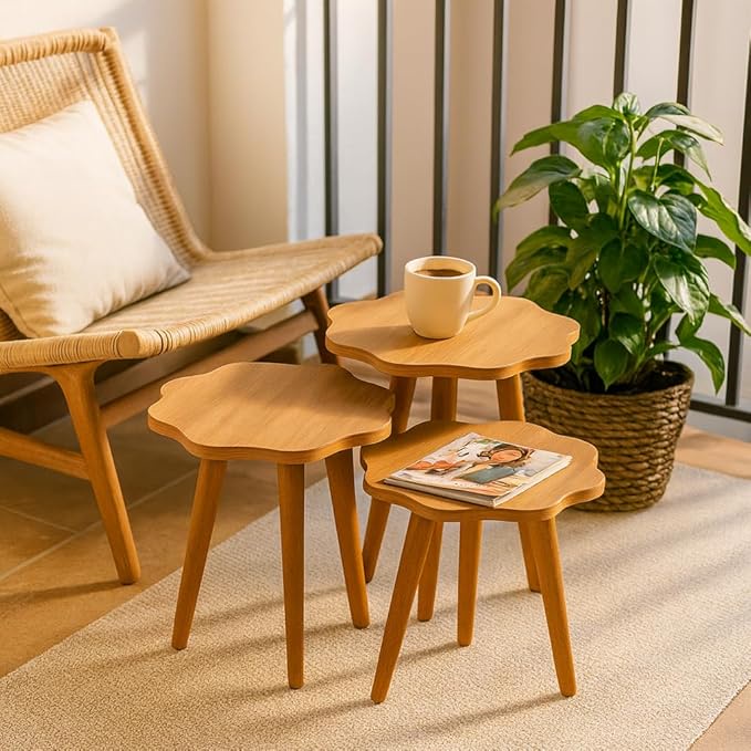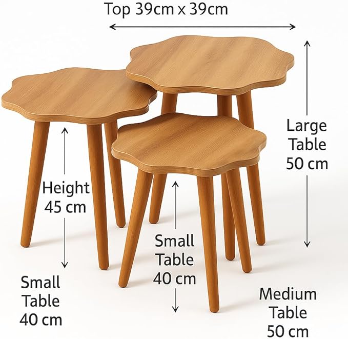 يمكن تكديس ثلاث طاولات معاً لتوفير المساحة أو ترتيبها بشكل منفصل حسب الحاجة.