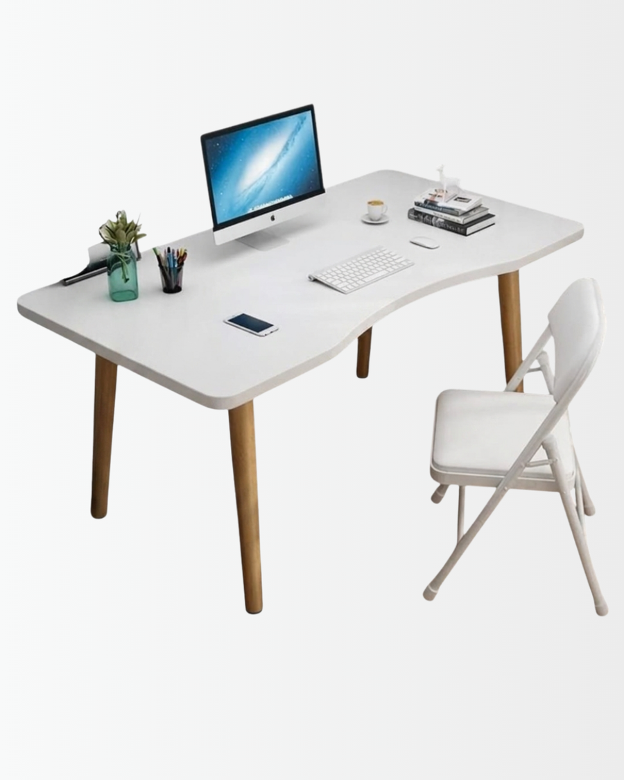 يتميز بلونه الأبيض الأنيق المقاوم للخدوش والسهل التنظيف، مما يجعله مثالياً للدراسة أو العمل.