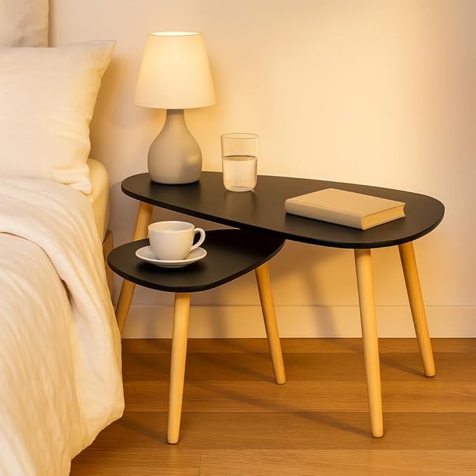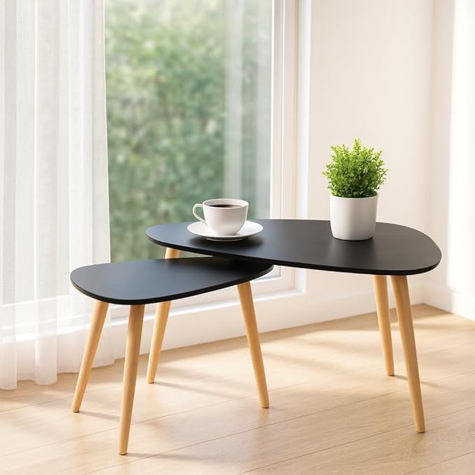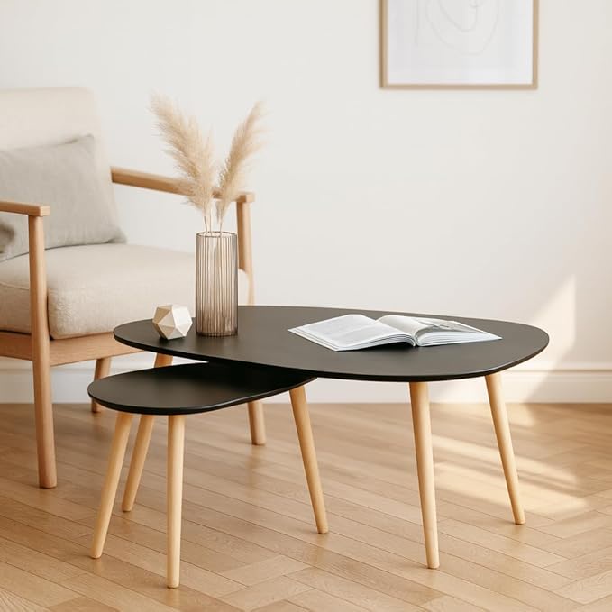 أسطح سوداء أنيقة مقترنة بأرجل خشبية لمظهر عصري فاخر.
